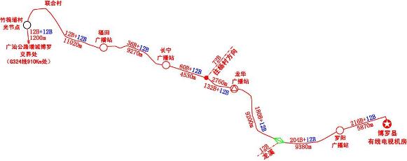 广汕公路增城博罗交界处(G324线910Km处)-博罗县广播电视台机房光缆线路示意图