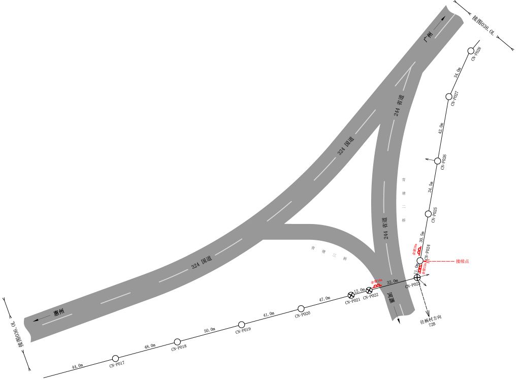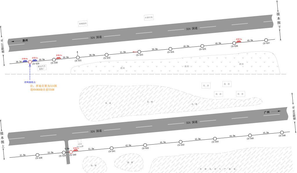 (3)广汕公路增城博罗交界处(G324线910Km处)至竹筏埔村光节点新建架空光缆线路1.2km。